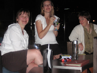 And what's one of the best parts of being here at the conference? Hanging out at the lounge after the conference winds down. Here I am with Alice Pope and Kim Baker, and my water...yes, water! Because this was after I had a glass of wine, which got me buzzed (yes, it did) and then did yoga.